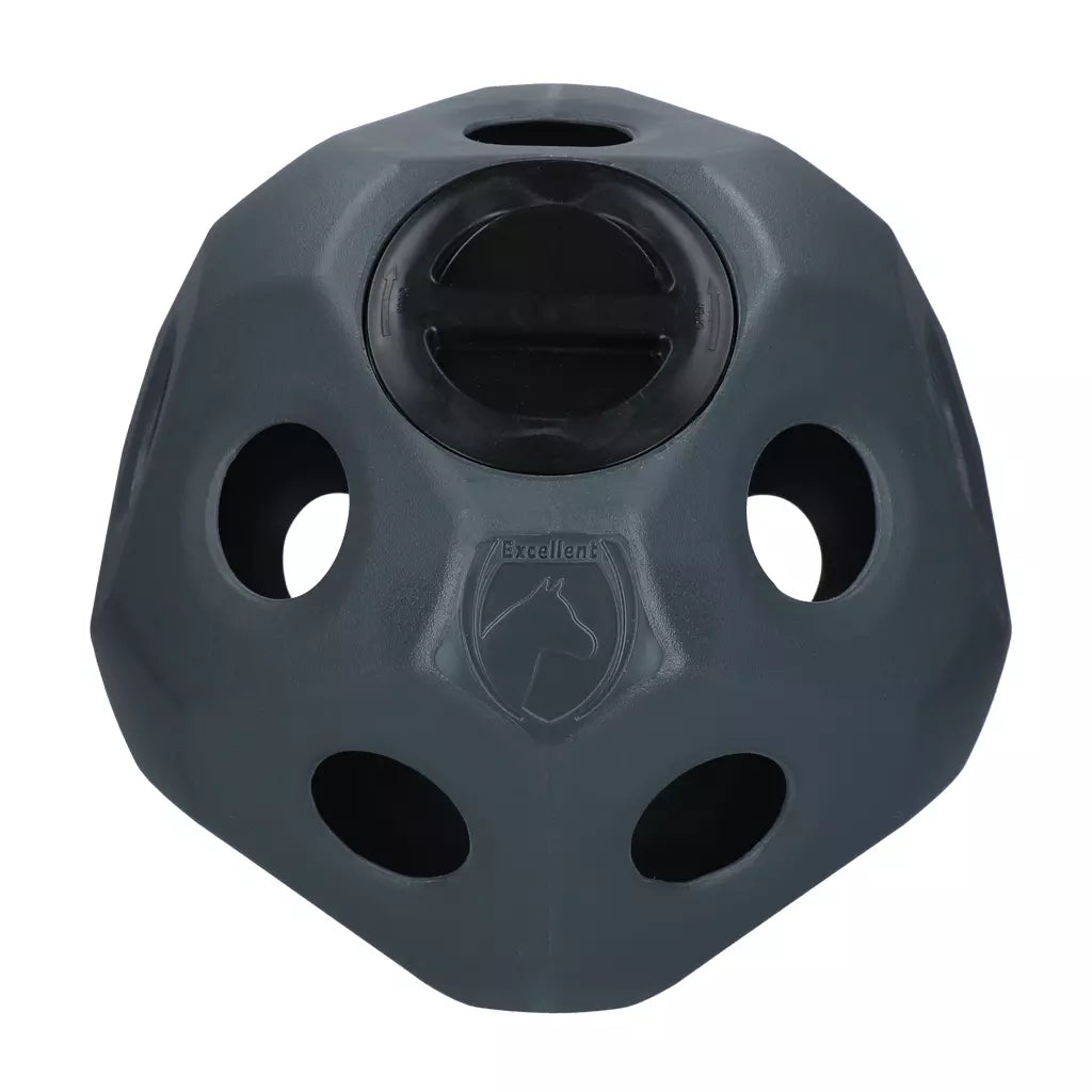 De bal is gemaakt van stevig, UV-bestendig kunststof en is eenvoudig te vullen via de speciale opening met schroefdeksel. Dankzij de 19 voeropeningen wordt het voer geleidelijk vrijgegeven, waardoor je paard actief bezig blijft. De Feed & Play Ball is ideaal voor gebruik in de stal, paddock of weide. Gebruik de bal altijd onder toezicht voor optimale veiligheid.